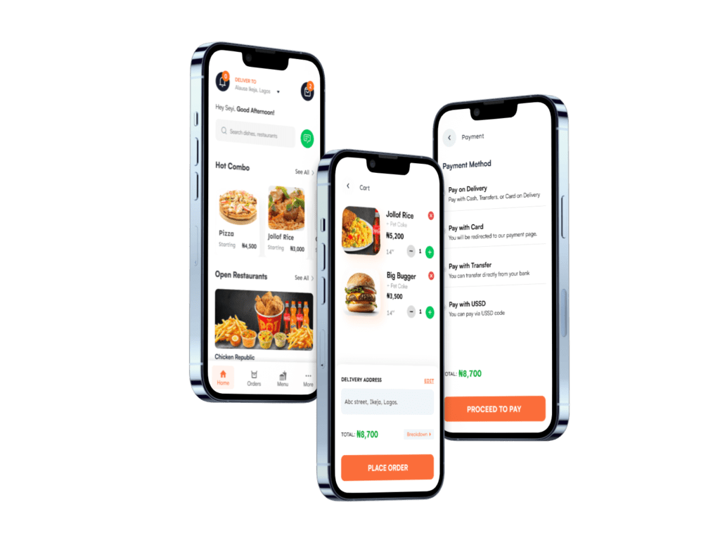 Users needed a food ordering and delivery app that’ll allow them track their orders and alo chat with an expert on specific orders.