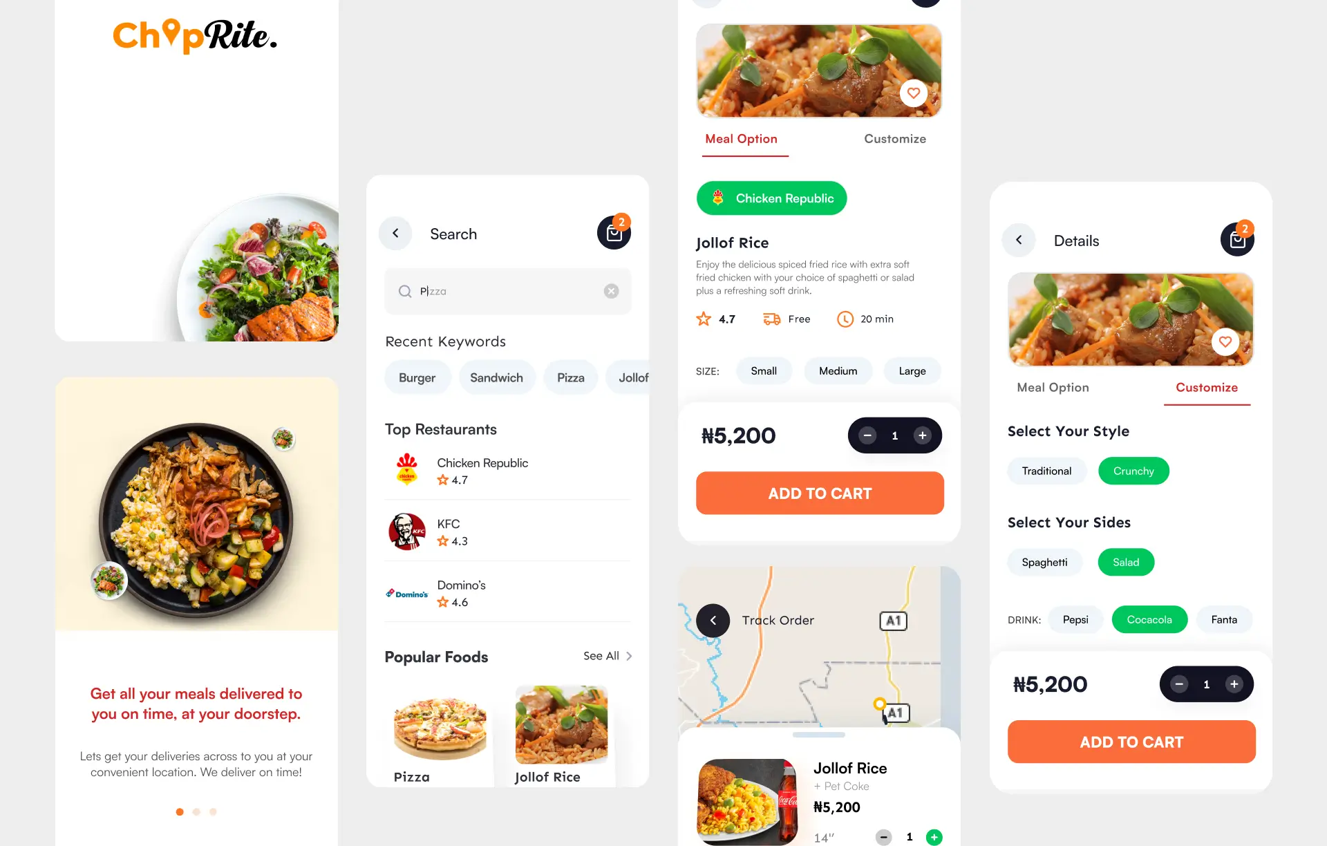 Choprite is a food ordering and delivery app that enable busy users and meal lovers to order any meal online and track the meals delivery. Choprite also allows users to chat with experts when they have specific orders. Our target audience are young people who lives in suburban areas in Nigeria.