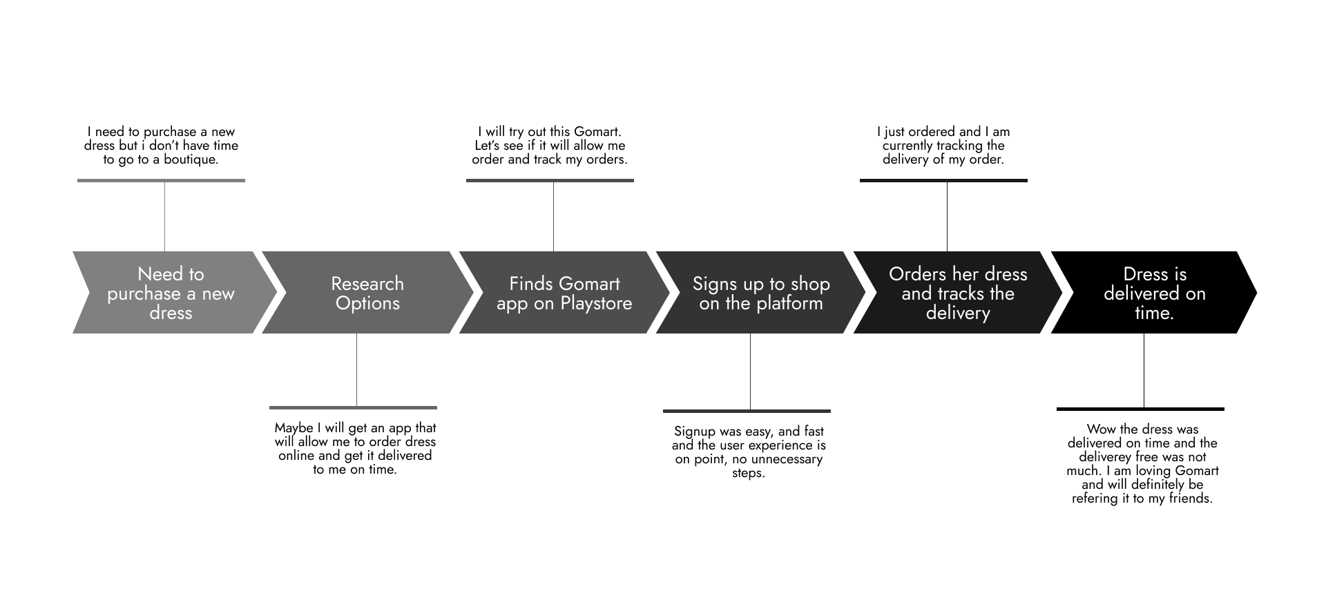 The first step was to conduct user interviews to determine the experience users have with e-commerce apps. This was achieved by using surveys to understand the pain points, expectations, and preferences of potential users.