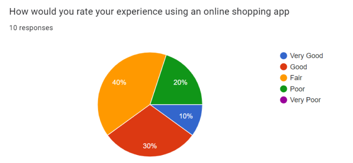We also asked them to rate their experiences using an online shopping app. Most responders claimed that they’ve had a fair experience so far. This shows that there’s significant room for improvements.