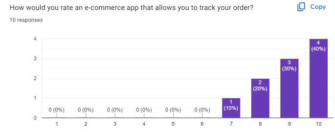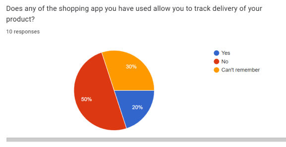 We also wanted to know if they’ve experienced the order tracking feature before. Only 20% came out as yes, meaning many haven’t experienced an order tracking feature in an online shopping app before.